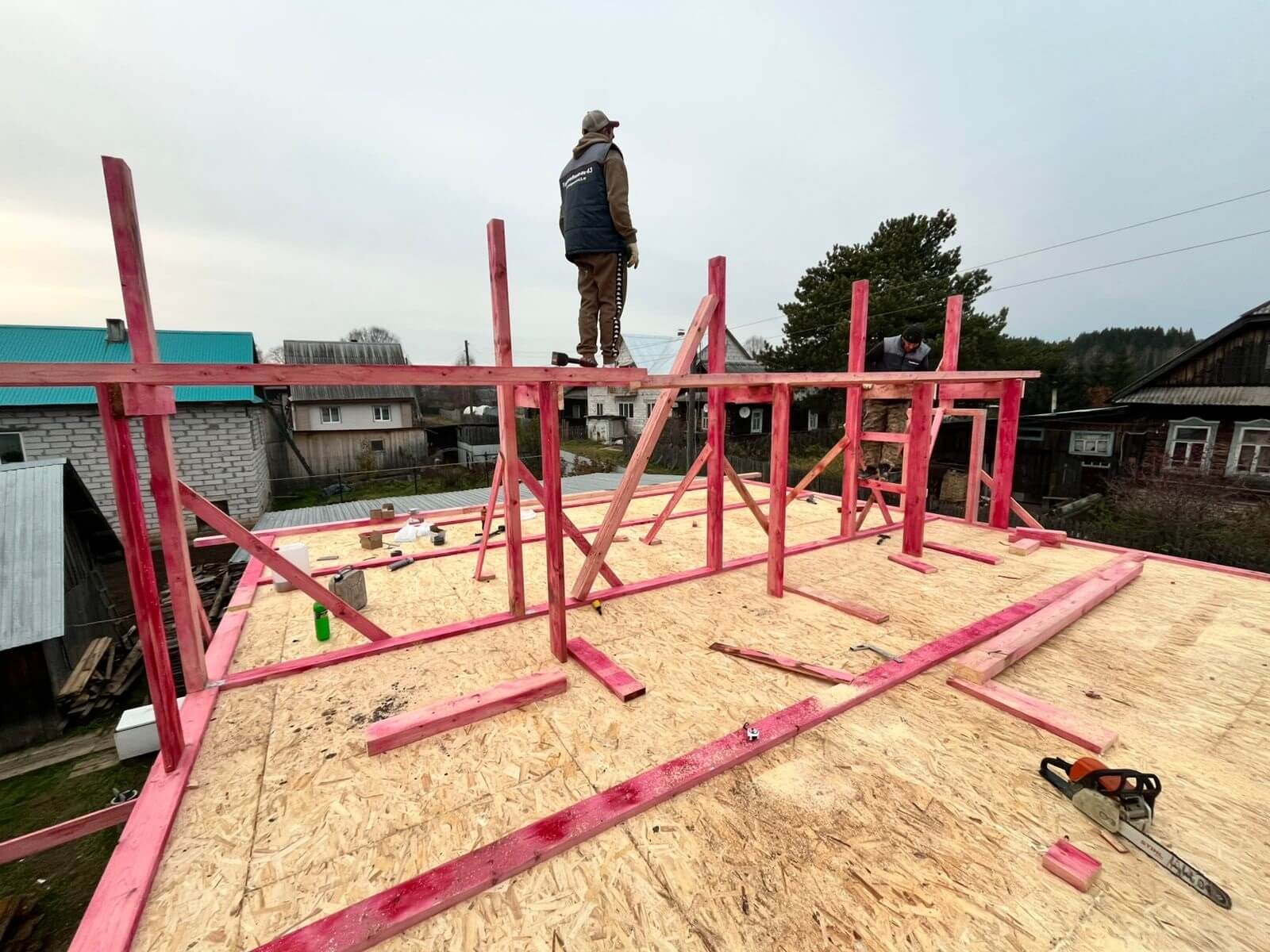 С гордостью сообщаем, что уже установили стены из СИП-панелей толщиной 171 мм и потолок толщиной 221 мм! Эти материалы обеспечивают отличную тепло- и звукоизоляцию, что делает ваш дом комфортным в любое время ...